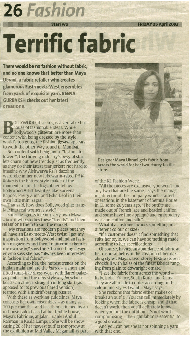 Maya Fabric Galler, however, has a form footing here because each piece of fabric carrying the "Maya"label is designed by its designer and managing director Maya Ubrani.